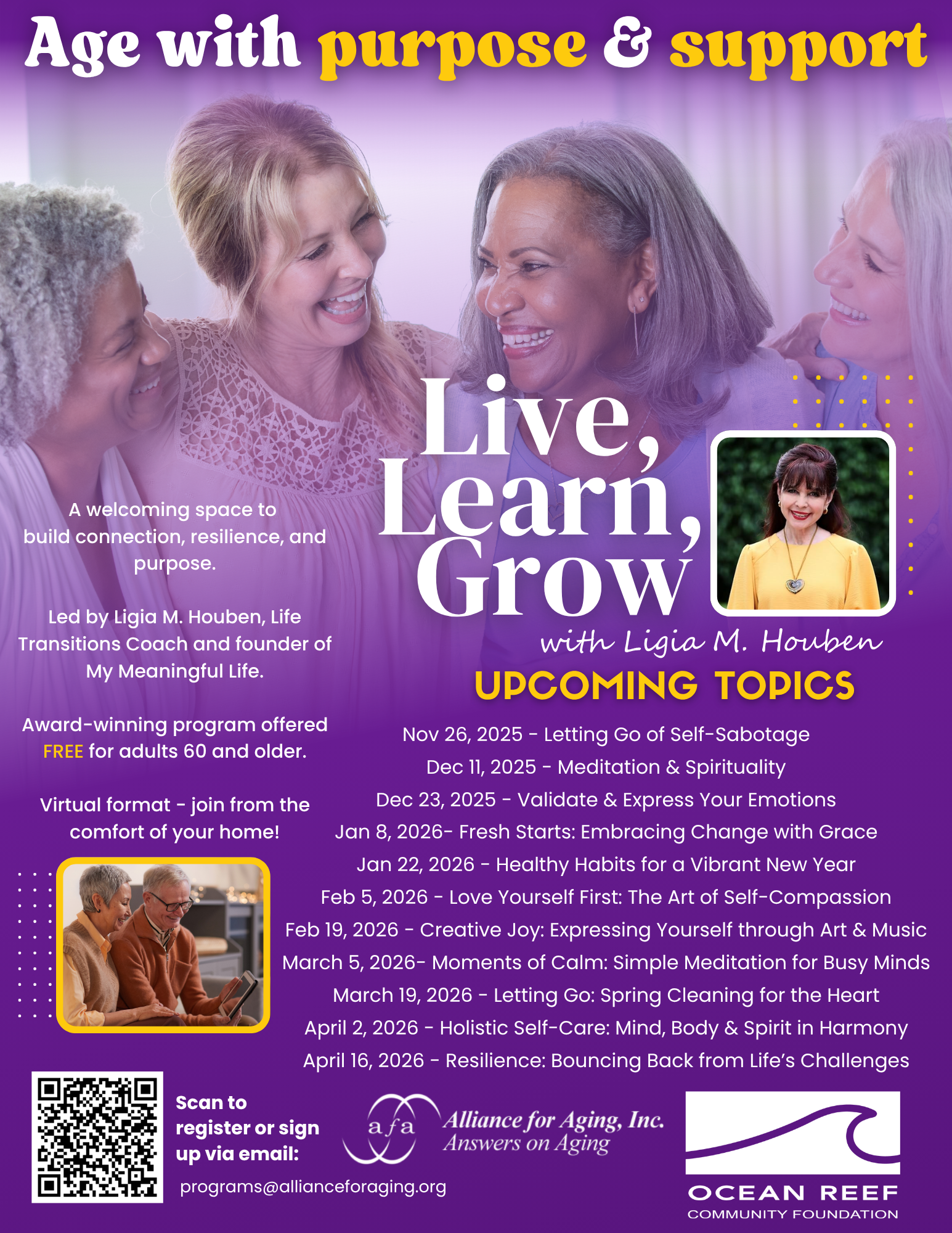 Led by Ligia M. Houben, certified geriatric counselor and founder of My Meaningful Life and The Center for Transforming Lives